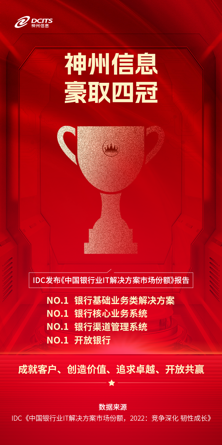 7月13日,IDC 正式发布《中国银行业IT解决方案市场份额,2022:竞争深化 韧性成长》报告,尊龙凯时人生就是博首页信息凭借雄厚的金融数字化实力再次豪取多项市场第一。