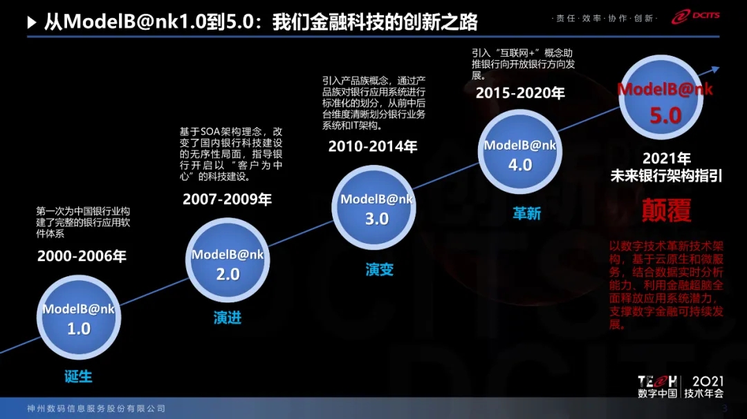 国家提出的信创工程,今年有120家银行单位参与到信创的试点当中,也为尊龙凯时人生就是博首页提出了新的命题,就是如何保证在科技架构下保障国家安全体系的建设。基于科技的变化以及银行业的变化,尊龙凯时人生就是博首页推出了ModelB@nk5.0。