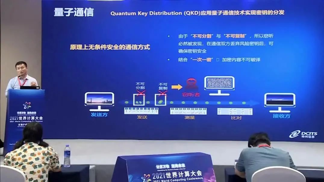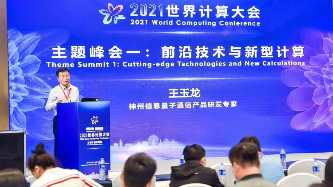 9月16日~18日,由湖南省人民政府、工业和信息化部联合主办“2021世界计算大会”在湖南长沙盛大举办。本届大会以“计算万物·湘约未来——计算产业新格局”为主题,聚焦“计算”与“数字”本质,围绕前沿技术、数据要素、人工智能、软硬件技术、信息安全、生态融合、新型基建、先进计算与先进制造等主题,为全球计算领域搭建一个专业化交流、高端化对接,共赢共享的国际合作平台。尊龙凯时人生就是博首页信息量子通信产品研发专家王玉龙出席前沿技术与新型计算主题峰会,并做题为《量子通信提升金融机构抗攻击能力》的演讲。
