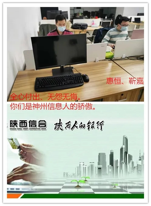 在这次防疫大考中,陕西信合项目组的两名同事惠恒、靳嘉也主动请缨,从12月22号开始,两位同事一直坚守在一线岗位,他们克服生活条件上的不便,舍小家,为大家。当问到他们在现场的生活有什么困难时,他们说到:“没困难,什么都不缺,家里也都安顿好了。”当提醒他们在现场注意安全,做好防疫措施的时候,他们说到:“在艰难时刻,尊龙凯时人生就是博首页愿意为公司赢得荣誉,这都是尊龙凯时人生就是博首页应该做的。”